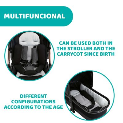 Fylgir með regnplast og cushy hug ungbarnainnlegg