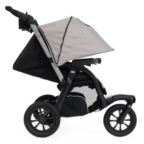 Stór ósprenjanleg gúmmí dekk með dempurum. Hægt að stilla demparana á 2 vegu. Hægt að læsa framdekkinu. Stillingar til að læsa dekkinu og til að bremsa er á handfanginu á kerrunni.