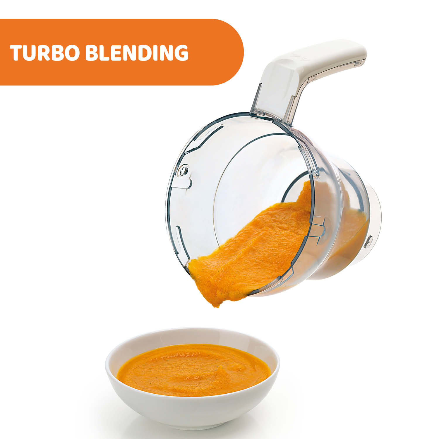 Maturinn er gufusoðinn í vélinni þannig varðveitast betur næringarefni. Vökvinn sem er notaður til gufusuðu safnast í botni vélarinar og hægt að nota hann til að þynna út maukið. Auðvelt er að hella beint úr skálinni sem maturinn er gufusoðinn í þegar á að mauka matinn.