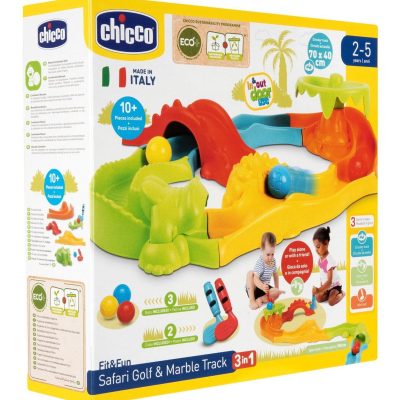 Golf og safari þrautarbraut sem samanstendur af 6 litríkum hlutum sem auðvelt er að setja saman og hægt að setja saman að vild.
