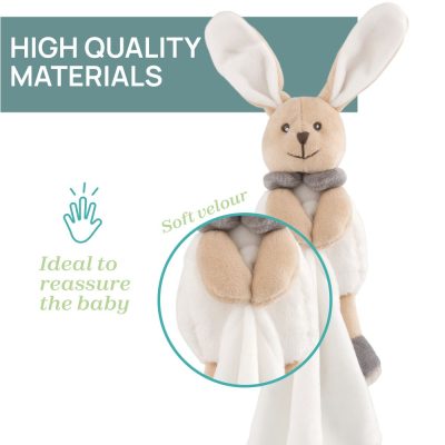 Einstaklega mjúkur og fallegur kúruklútur með fallegri kanínu. Úr ofnæmisprófuðu efni. Kemur í fallegum gjafakassa Má fara í þvottavél.