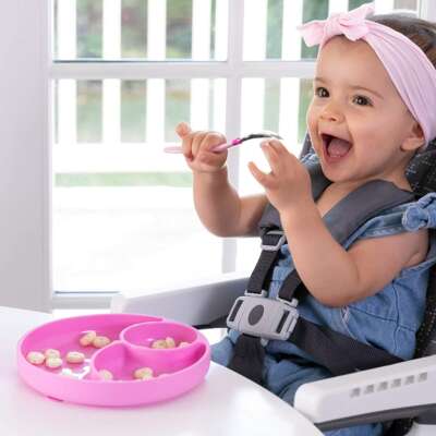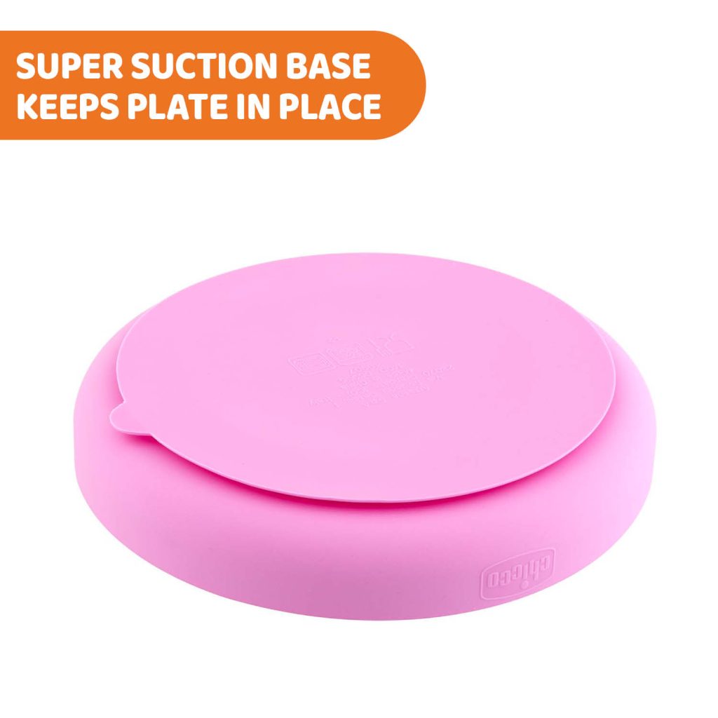 Chicco Silicone Diskur með hólfum og sogskál – Bleikur