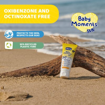 Chicco sólarvörn Mineral SPF+50 með FORMULA 3 PRO-TECH sem tryggir vernd húðarinnar gegn UVA, UVB og innrauðum (IR) geislum.