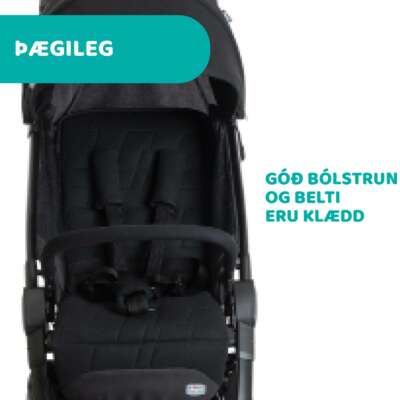 3 stillingar á baki sem leggst niður í svefnstöðu og hentar því frá fæðingu.