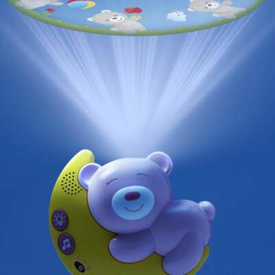 - Ljósið varpar myndum upp á skerminn sem barnið getur horft á.